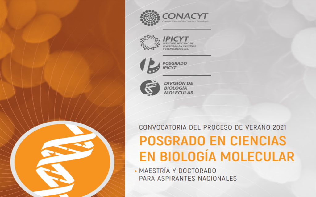 · El IPICYT convoca a las (os) aspirantes nacionales a inscribirse como alumnos para obtener el grado de Maestro(a) o Doctor(a) en ciencias en Biología Molecular, a presentar su solicitud de admisión en la convocatoria Verano 2021para ingresar en agosto del presente año.